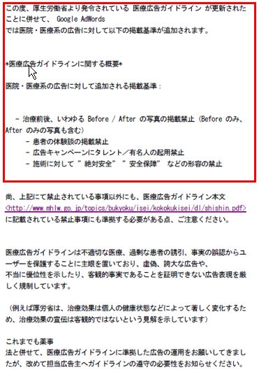 ⇒医療広告ガイドライン(H19年厚労省通知)